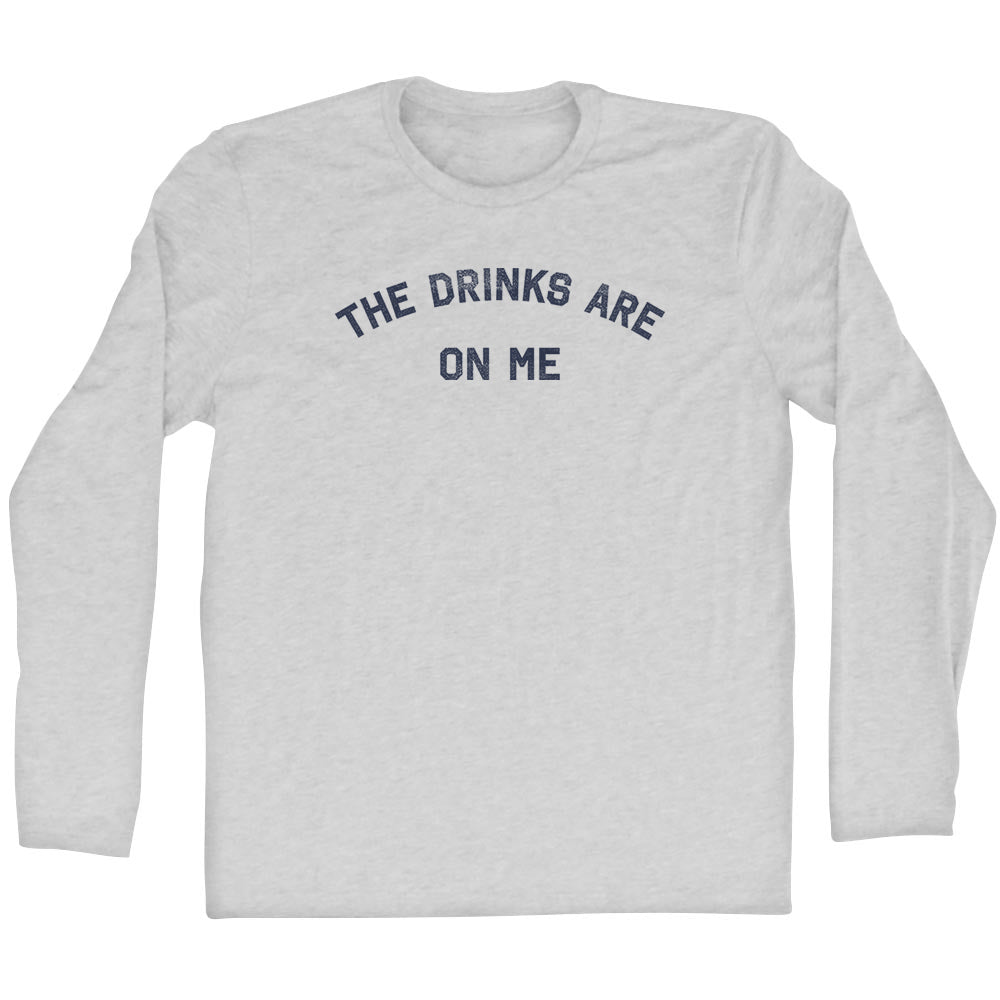 - The Drinks Are On Me Adult Cotton Long Sleeve T-shirt