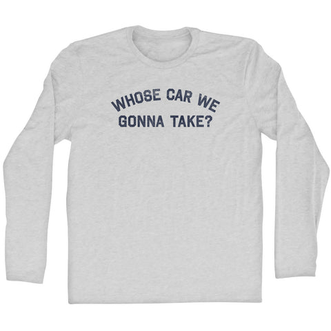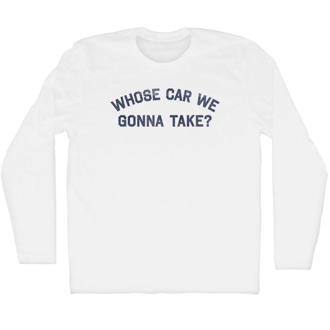 Product Story: Whose Car We Gonna Take Adult Cotton Long Sleeve T-shirtProduct Description: Whose Car We Gonna Take Adult Cotton Long Sleeve T-shirt Cotton (90% Cotton &10% Polyester) Buttery Smooth Soft Material Medium Weight Tee Soft Hand Print