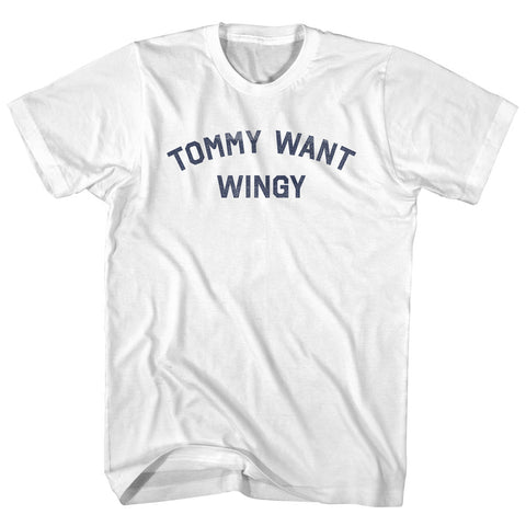 Product Story: Tommy Want Wingy Adult Cotton T-shirtProduct Description: Tommy Want Wingy Adult Cotton T-shirt Cotton Buttery Smooth Soft Material Medium Weight Tee Soft Hand Print