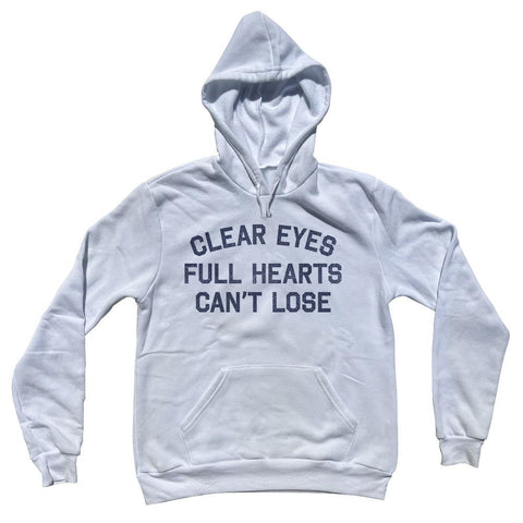 Product Story: Clear Eyes Full Hearts Can't Lose Cotton-Poly Blend HoodieProduct Description: Clear Eyes Full Hearts Can't Lose Cotton-Poly Blend Hoodie 6.5 oz. Tri-Blend Cozy Soft Material Pre-Shrunk Set-in sleeves Pouch front pocket Ribbed bottom band and sleeve cuffs