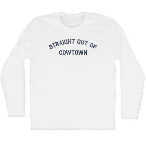 Product Story: Straight Out of Cowtown Adult Cotton Long Sleeve T-shirtProduct Description: Straight Out of Cowtown Adult Cotton Long Sleeve T-shirt Cotton Buttery Smooth Soft Material Medium Weight Tee Soft Hand Print
