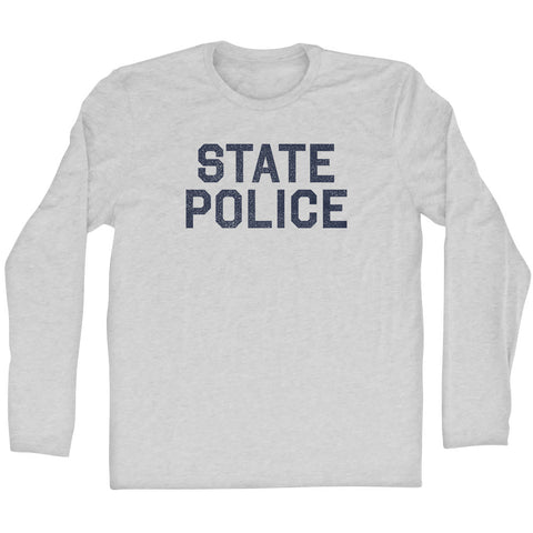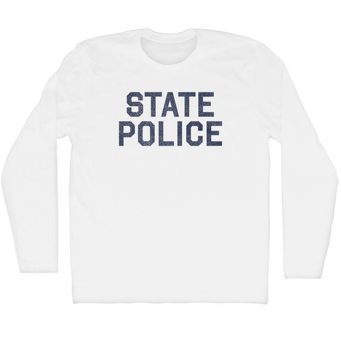 Product Story: State Police Adult Cotton Long Sleeve T-shirtProduct Description: State Police Adult Cotton Long Sleeve T-shirt Cotton Buttery Smooth Soft Material Medium Weight Tee Soft Hand Print