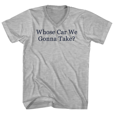 Product Story: Whose Car We Gonna Take Rage Font Adult Cotton V-neck T-shirtProduct Description: Whose Car We Gonna Take Rage Font Adult Cotton V-neck T-shirt Cotton Buttery Smooth Soft Material Medium Weight Tee Soft Hand Print