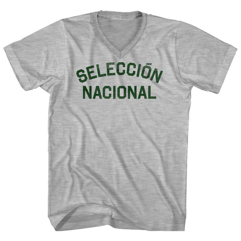 Product Story: Seleccion Nacional Hunter Green Text Adult Cotton V-neck T-shirtProduct Description: Seleccion Nacional Hunter Green Text Adult Cotton V-neck T-shirt Tri-Blend (Polyester, Rayon, Cotton) Buttery Smooth Soft Material Medium Weight Tee Soft Hand Print