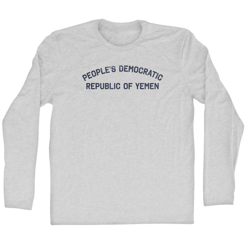 Product Story: People's Democratic Republic of Yemen Adult Tri-Blend Long Sleeve T-shirtProduct Description: People's Democratic Republic of Yemen Adult Tri-Blend Long Sleeve T-shirt Tri-Blend (Polyester, Rayon, Cotton) Buttery Smooth Soft Material Medium Weight Tee Soft Hand Print