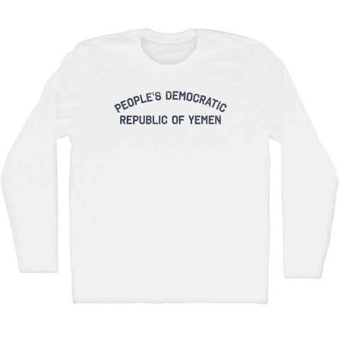 Product Story: People's Democratic Republic of Yemen Adult Cotton Long Sleeve T-shirtProduct Description: People's Democratic Republic of Yemen Adult Cotton Long Sleeve T-shirt Cotton (90% Cotton &10% Polyester) Buttery Smooth Soft Material Medium Weight Tee Soft Hand Print