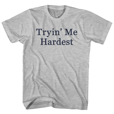 Product Story: Tryin' Me Hardest Rage Font Adult Tri-Blend T-shirtProduct Description: Tryin' Me Hardest Rage Font Adult Tri-Blend T-shirt Tri-Blend (Polyester, Rayon, Cotton) Buttery Smooth Soft Material