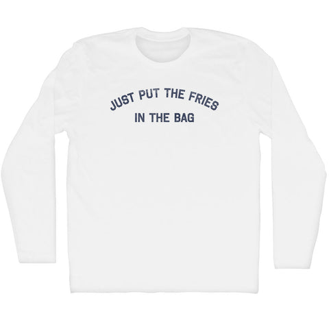 Product Story: Just Put The Fries In The Bag Adult Cotton Long Sleeve T-shirtProduct Description: Just Put The Fries In The Bag Adult Cotton Long Sleeve T-shirt Cotton Buttery Smooth Soft Material Medium Weight Tee Soft Hand Print