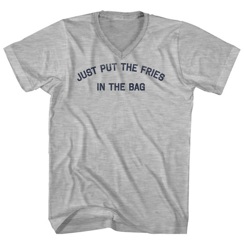 Product Story: Just Put The Fries In The Bag Adult Cotton V-neck T-shirtProduct Description: Just Put The Fries In The Bag Adult Cotton V-neck T-shirt Cotton Buttery Smooth Soft Material Medium Weight Tee Soft Hand Print