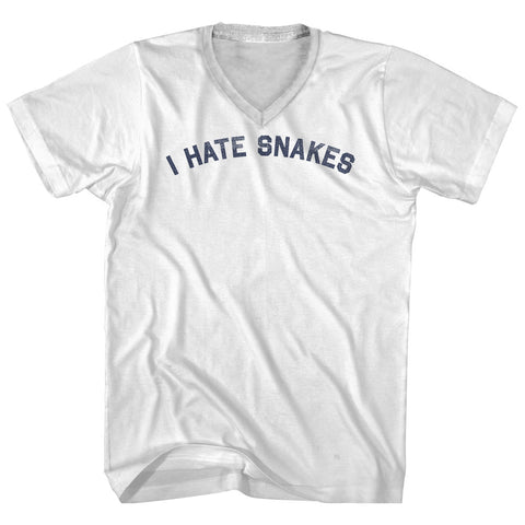 Product Story: I Hate Snakes Adult Cotton V-neck T-shirtProduct Description: I Hate Snakes Adult Cotton V-neck T-shirt Tri-Blend (Polyester, Rayon, Cotton) Buttery Smooth Soft Material Medium Weight Tee Soft Hand Print