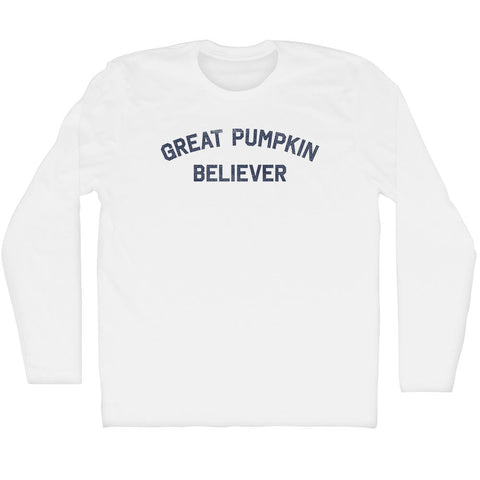 Product Story: Great Pumpkin Believer Adult Cotton Long Sleeve T-shirtProduct Description: Great Pumpkin Believer Adult Cotton Long Sleeve T-shirt Cotton (90% Cotton &10% Polyester) Buttery Smooth Soft Material Medium Weight Tee Soft Hand Print
