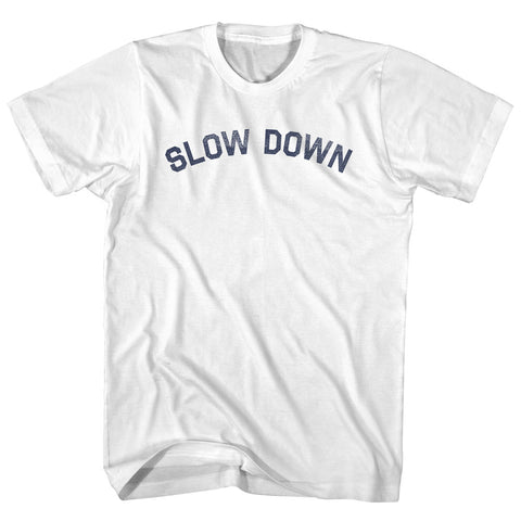 Product Story: Slow Down Adult Cotton T-shirtProduct Description: Slow Down Adult Cotton T-shirt Cotton Buttery Smooth Soft Material Medium Weight Tee Soft Hand Print