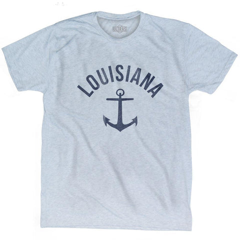 Product Story: Louisiana State Anchor Home Tri-Blend Adult T-shirtProduct Description: Tri-Blend (Polyester, Rayon, Cotton) Buttery Smooth Soft Material Premium T-shirt Medium Weight Tee Soft Hand Print