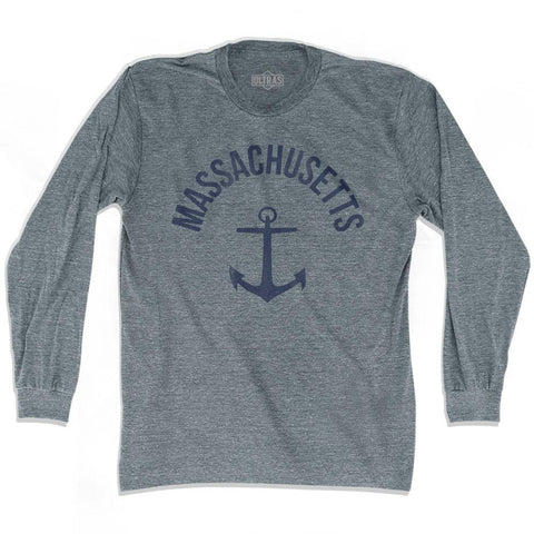 Product Story: Massachusetts State Anchor Home Tri-Blend Adult Long Sleeve T-shirtProduct Description: Tri-Blend (Polyester, Rayon, Cotton) Buttery Smooth Soft Material Premium T-shirt Medium Weight Tee Soft Hand Print