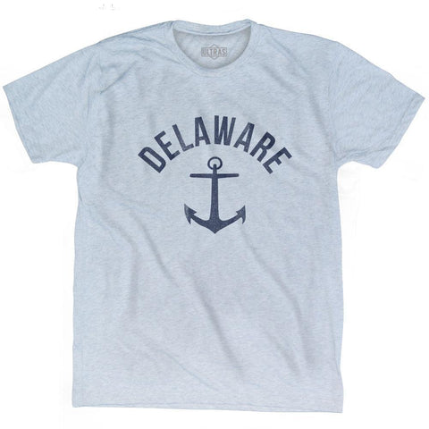Product Story: Delaware State Anchor Home Tri-Blend Adult T-shirtProduct Description: Tri-Blend (Polyester, Rayon, Cotton) Buttery Smooth Soft Material Premium T-shirt Medium Weight Tee Soft Hand Print