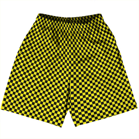 Product Story: Checkerboard Half Inch Black and Yellow Basketball Practice Shorts Made In USAProduct Description: Checkerboard Half Inch Black and Yellow Basketball Practice Shorts Made In USA Basketball Apparel Deep Pockets 100% Micro-Fiber Polyester Made In USA