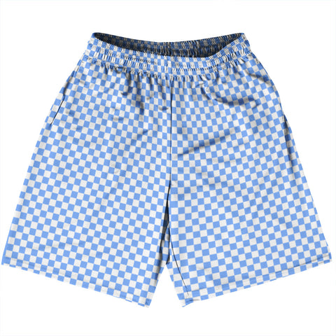 Product Story: Checkerboard Half Inch Blue Carolina and White Basketball Practice Shorts Made In USAProduct Description: Checkerboard Half Inch Blue Carolina and White Basketball Practice Shorts Made In USA Basketball Apparel Deep Pockets 100% Micro-Fiber Polyester Made In USA