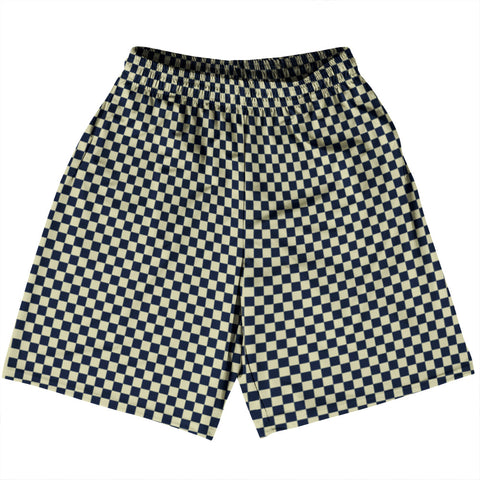 Product Story: Checkerboard Half Inch Blue Navy and Vegas Gold Basketball Practice Shorts Made In USAProduct Description: Checkerboard Half Inch Blue Navy and Vegas Gold Basketball Practice Shorts Made In USA Basketball Apparel Deep Pockets 100% Micro-Fiber Polyester Made In USA