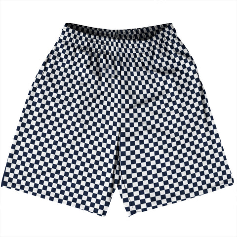 Product Story: Checkerboard Half Inch Blue Navy and White Basketball Practice Shorts Made In USAProduct Description: Checkerboard Half Inch Blue Navy and White Basketball Practice Shorts Made In USA Basketball Apparel Deep Pockets 100% Micro-Fiber Polyester Made In USA