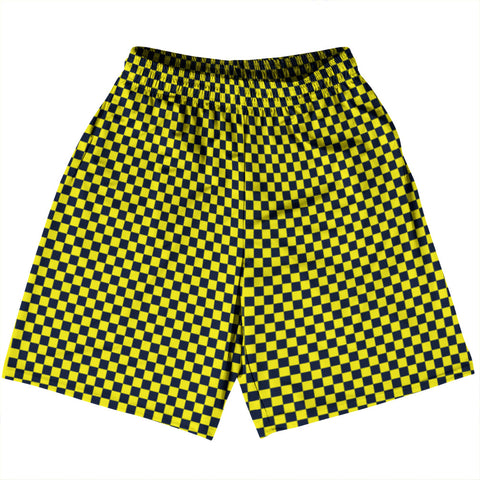 Product Story: Checkerboard Half Inch Blue Navy and Yellow Bright Basketball Practice Shorts Made In USAProduct Description: Checkerboard Half Inch Blue Navy and Yellow Bright Basketball Practice Shorts Made In USA Basketball Apparel Deep Pockets 100% Micro-Fiber Polyester Made In USA