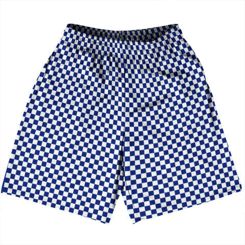 Product Story: Checkerboard Half Inch Blue Royal and White Basketball Practice Shorts Made In USAProduct Description: Checkerboard Half Inch Blue Royal and White Basketball Practice Shorts Made In USA Basketball Apparel Deep Pockets 100% Micro-Fiber Polyester Made In USA