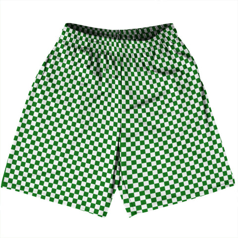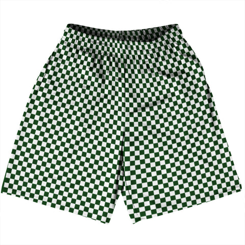 Product Story: Checkerboard Half Inch Green Forest and White Basketball Practice Shorts Made In USAProduct Description: Checkerboard Half Inch Green Forest and White Basketball Practice Shorts Made In USA Basketball Apparel Deep Pockets 100% Micro-Fiber Polyester Made In USA