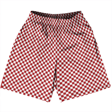 Product Story: Checkerboard Half Inch Red Dark and White Basketball Practice Shorts Made In USAProduct Description: Checkerboard Half Inch Red Dark and White Basketball Practice Shorts Made In USA Basketball Apparel Deep Pockets 100% Micro-Fiber Polyester Made In USA