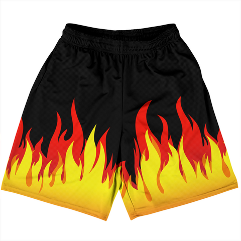 Product Story: Flame Pattern Basketball Practice Shorts Made In USAProduct Description: Flame Pattern Basketball Practice Shorts Made In USA Basketball Apparel Deep Pockets 100% Micro-Fiber Polyester Made In USA