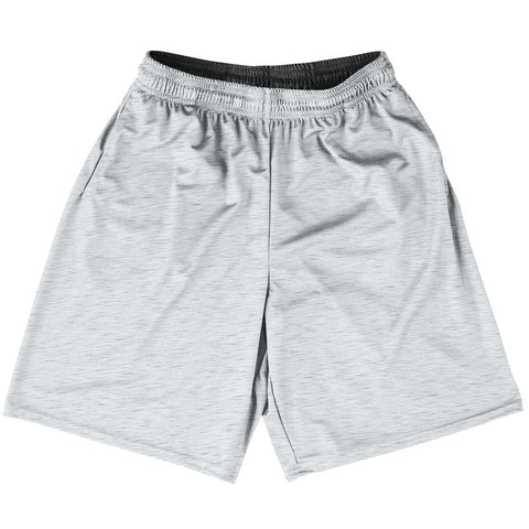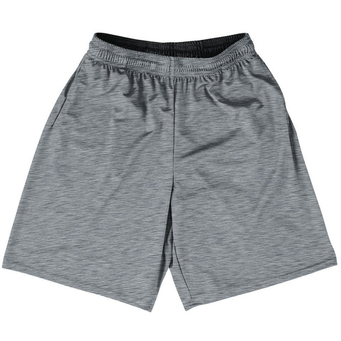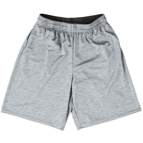 Product Story: Heathered Basketball Practice Shorts Made In USAProduct Description: Heathered Basketball Practice Shorts Made In USA Basketball Apparel Deep Pockets 100% Micro-Fiber Polyester Made In USA