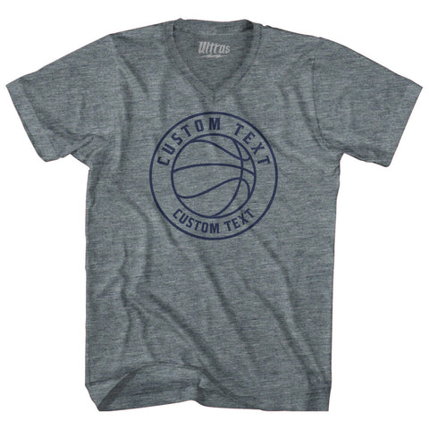 Product Story: Basketball Custom Text Adult Tri-Blend V-neck T-shirtProduct Description: Basketball Custom Text Adult Tri-Blend V-neck T-shirt Tri-Blend (Polyester, Rayon, Cotton) Buttery Smooth Soft Material Medium Weight Tee Soft Hand Print