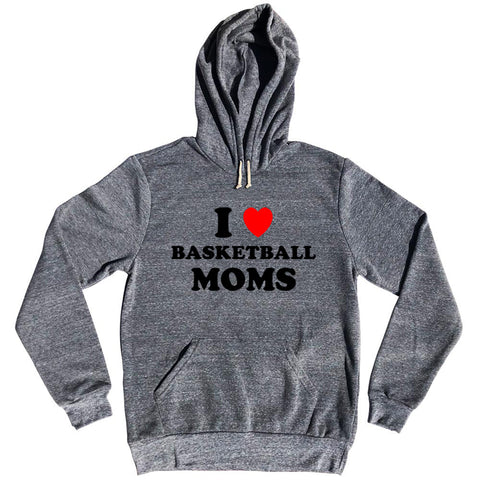 Product Story: I Love Basketball Moms Tri-Blend HoodieProduct Description: I Love Basketball Moms Tri-Blend Hoodie 6.5 oz. Tri-Blend Cozy Soft Material Pre-Shrunk Set-in sleeves Pouch front pocket Ribbed bottom band and sleeve cuffs