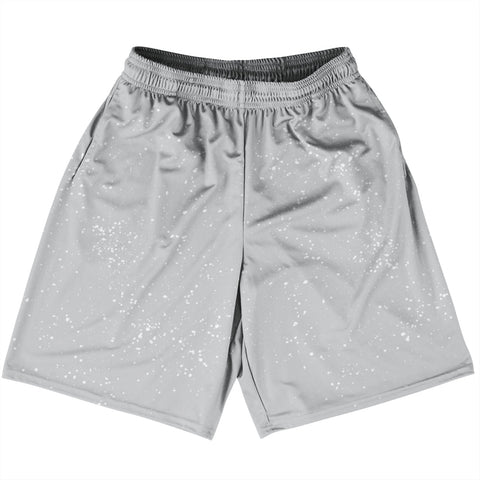 Product Story: Super Fly Pattern Grey Medium and White Basketball Practice Shorts Made In USAProduct Description: Super Fly Pattern Grey Medium and White Basketball Practice Shorts Made In USA Basketball Apparel Deep Pockets 100% Micro-Fiber Polyester Made In USA