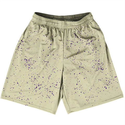 Product Story: Super Fly Pattern Purple Medium and Vegas Gold Basketball Practice Shorts Made In USAProduct Description: Super Fly Pattern Purple Medium and Vegas Gold Basketball Practice Shorts Made In USA Basketball Apparel Deep Pockets 100% Micro-Fiber Polyester Made In USA