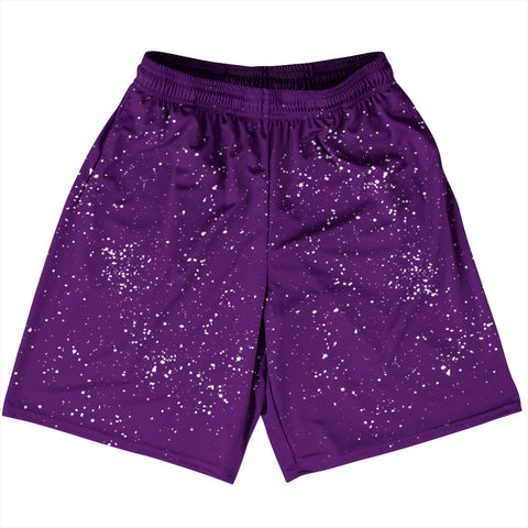 Product Story: Super Fly Pattern Purple Medium and White Basketball Practice Shorts Made In USAProduct Description: Super Fly Pattern Purple Medium and White Basketball Practice Shorts Made In USA Basketball Apparel Deep Pockets 100% Micro-Fiber Polyester Made In USA
