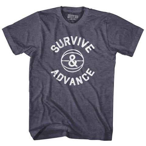 Product Story: Survive And Advance Basketball Adult Tri-Blend T-shirtProduct Description: Survive And Advance Basketball Adult Tri-Blend T-shirt Tri-Blend (Polyester, Rayon, Cotton) Buttery Smooth Soft Material Medium Weight Tee Soft Hand Print