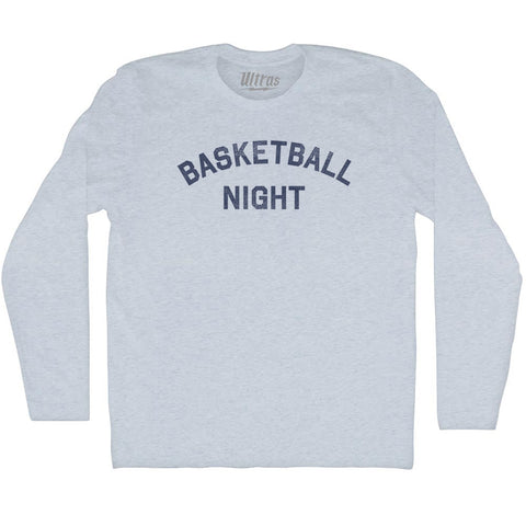 Product Story: Basketball Night Adult Tri-Blend Long Sleeve T-shirtProduct Description: Basketball Night Adult Tri-Blend Long Sleeve T-shirt Tri-Blend (Polyester, Rayon, Cotton) Buttery Smooth Soft Material Medium Weight Tee Soft Hand Print