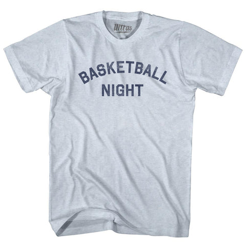 Product Story: Basketball Night Adult Tri-Blend T-shirtProduct Description: Basketball Night Adult Tri-Blend T-shirt Tri-Blend (Polyester, Rayon, Cotton) Buttery Smooth Soft Material Medium Weight Tee Soft Hand Print