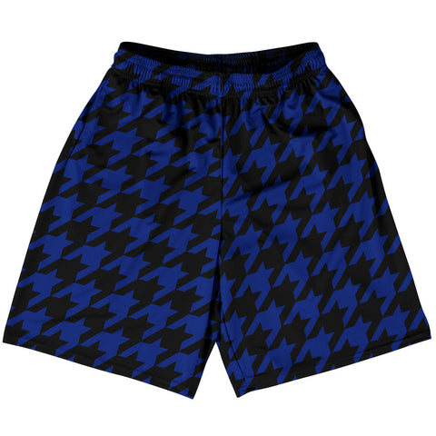 Product Story: Blue Royal And Black Houndstooth Basketball Practice Shorts Made In USAProduct Description: Blue Royal And Black Houndstooth Basketball Practice Shorts Made In USA Basketball Apparel Deep Pockets 100% Micro-Fiber Polyester Made In USA