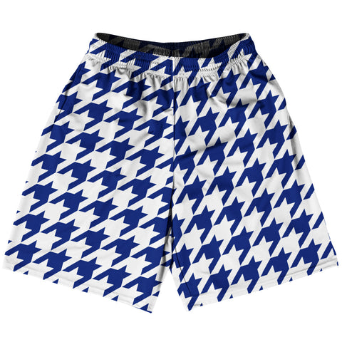 Product Story: Blue Royal And White Houndstooth Basketball Practice Shorts Made In USAProduct Description: Blue Royal And White Houndstooth Basketball Practice Shorts Made In USA Basketball Apparel Deep Pockets 100% Micro-Fiber Polyester Made In USA