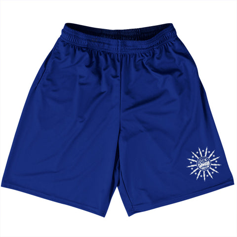 Product Story: Checkerboard 1 Inch Blue Royal and White Basketball Practice Shorts Made In USAProduct Description: Checkerboard 1 Inch Blue Royal and White Basketball Practice Shorts Made In USA Basketball Apparel Deep Pockets 100% Micro-Fiber Polyester Made In USA