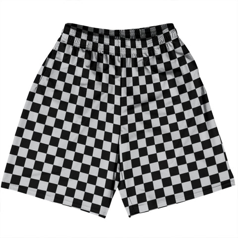 Product Story: Checkerboard 1 Inch Black and Grey Medium Basketball Practice Shorts Made In USAProduct Description: Checkerboard 1 Inch Black and Grey Medium Basketball Practice Shorts Made In USA Basketball Apparel Deep Pockets 100% Micro-Fiber Polyester Made In USA