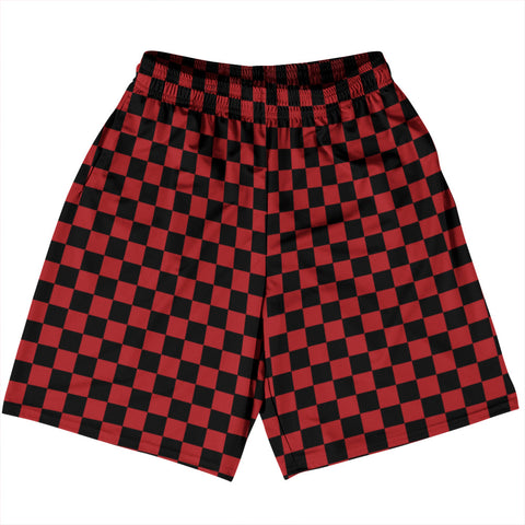 Product Story: Checkerboard 1 Inch Black and Red Dark Basketball Practice Shorts Made In USAProduct Description: Checkerboard 1 Inch Black and Red Dark Basketball Practice Shorts Made In USA Basketball Apparel Deep Pockets 100% Micro-Fiber Polyester Made In USA