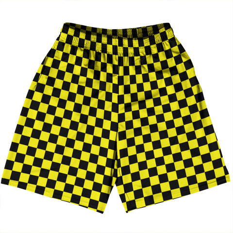Product Story: Checkerboard 1 Inch Black and Yellow Basketball Practice Shorts Made In USAProduct Description: Checkerboard 1 Inch Black and Yellow Basketball Practice Shorts Made In USA Basketball Apparel Deep Pockets 100% Micro-Fiber Polyester Made In USA