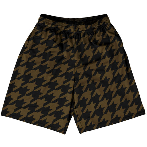 Product Story: Brown Dark And Black Houndstooth Basketball Practice Shorts Made In USAProduct Description: Brown Dark And Black Houndstooth Basketball Practice Shorts Made In USA Basketball Apparel Deep Pockets 100% Micro-Fiber Polyester Made In USA