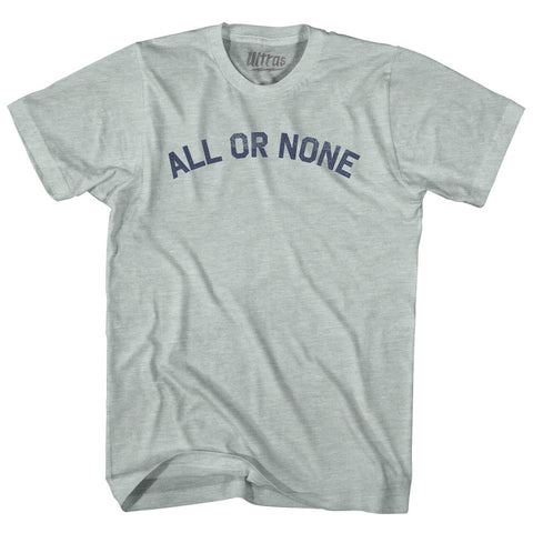 Product Story: All Or None Adult Tri-Blend T-shirtProduct Description: All Or None Adult Tri-Blend T-shirt Tri-Blend (Polyester, Rayon, Cotton) Buttery Smooth Soft Material Medium Weight Tee Soft Hand Print