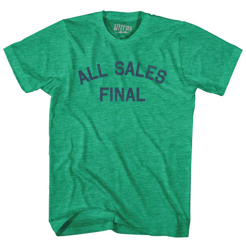 Product Story: All Sales Final Adult Tri-Blend T-shirtProduct Description: All Sales Final Adult Tri-Blend T-shirt Tri-Blend (Polyester, Rayon, Cotton) Buttery Smooth Soft Material Medium Weight Tee Soft Hand Print