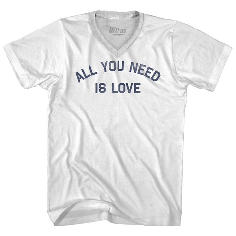 Product Story: All You Need Is Love Adult Tri-Blend V-neck T-shirtProduct Description: All You Need Is Love Adult Tri-Blend V-neck T-shirt Tri-Blend (Polyester, Rayon, Cotton) Buttery Smooth Soft Material Medium Weight Tee Soft Hand Print