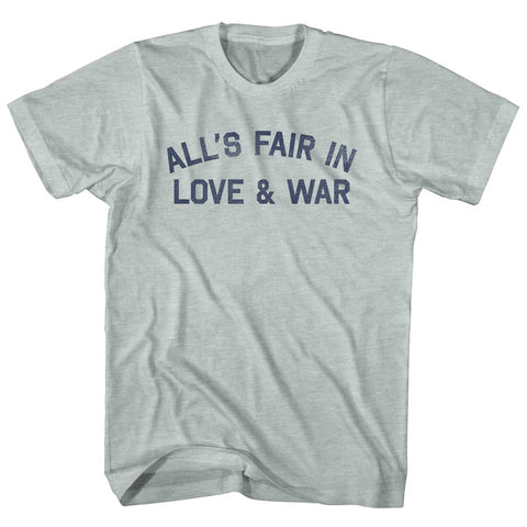 Product Story: All's Fair In Love And War Adult Tri-Blend T-shirtProduct Description: All's Fair In Love And War Adult Tri-Blend T-shirt Tri-Blend (Polyester, Rayon, Cotton) Buttery Smooth Soft Material Medium Weight Tee Soft Hand Print