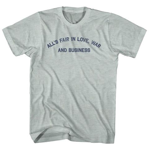 Product Story: All's Fair In Love, War And Business Adult Tri-Blend T-shirtProduct Description: All's Fair In Love, War And Business Adult Tri-Blend T-shirt Tri-Blend (Polyester, Rayon, Cotton) Buttery Smooth Soft Material Medium Weight Tee Soft Hand Print