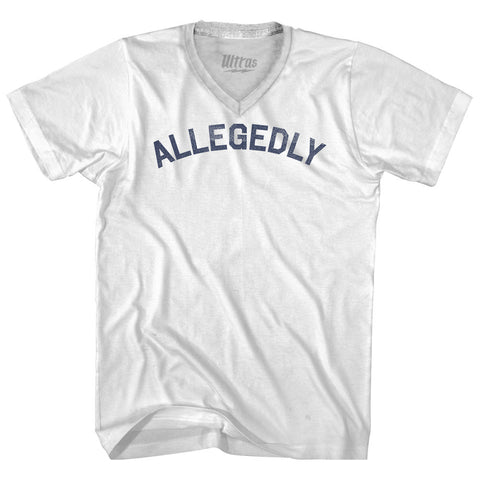 Product Story: Allegedly Adult Tri-Blend V-neck T-shirtProduct Description: Allegedly Adult Tri-Blend V-neck T-shirt Tri-Blend (Polyester, Rayon, Cotton) Buttery Smooth Soft Material Medium Weight Tee Soft Hand Print